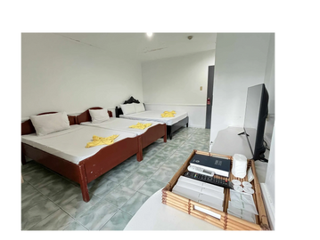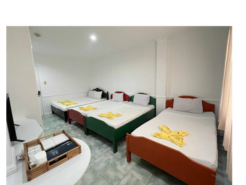 The facilities of the room includes bathroom with a hot and cold shower, and all necessary bath amenities, fully airconditioned, flat screen TV and free Wi-Fi. The room comes with one queen sized bed and three single beds.
